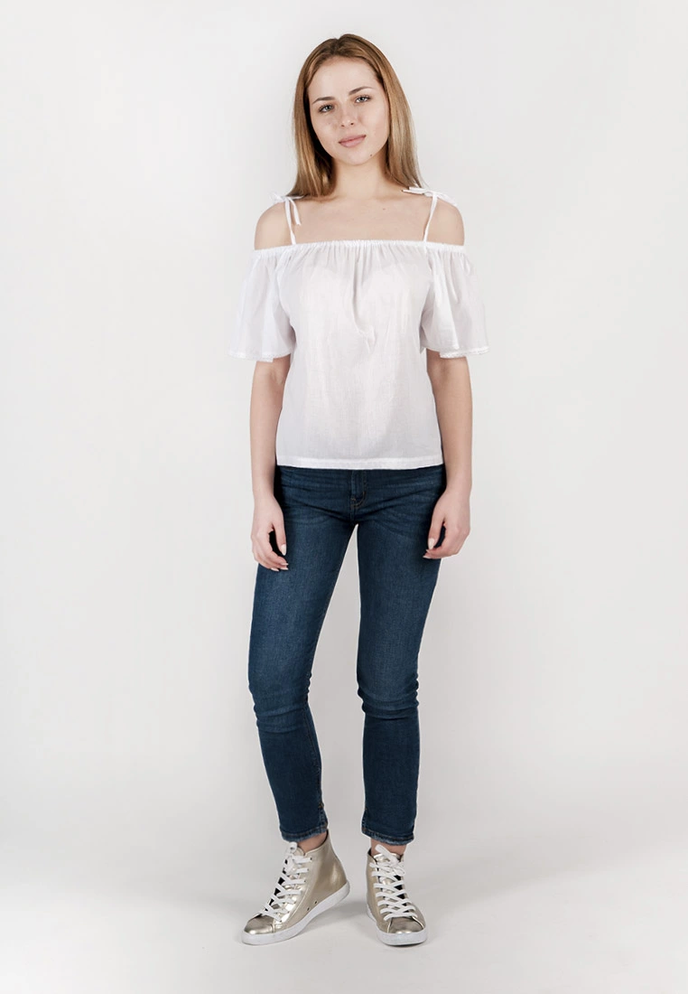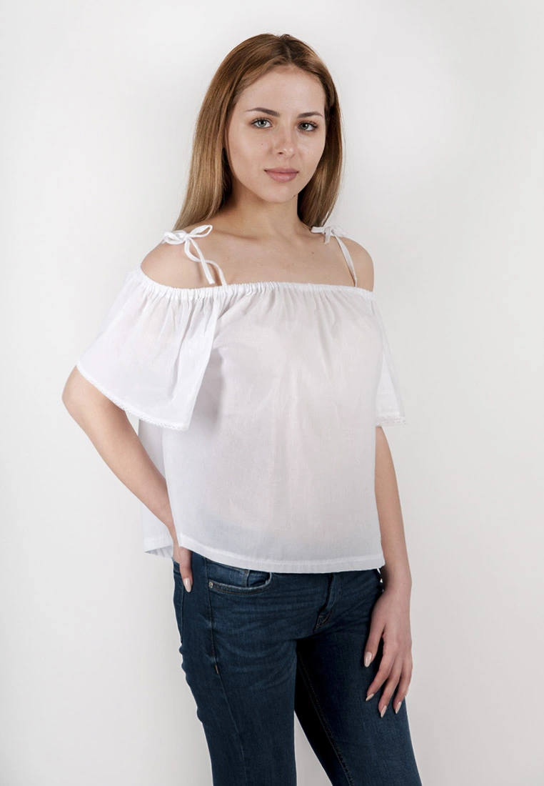 Женская блуза свободного кроя , на тонких бретелях. выполненна из натуральной ткани.