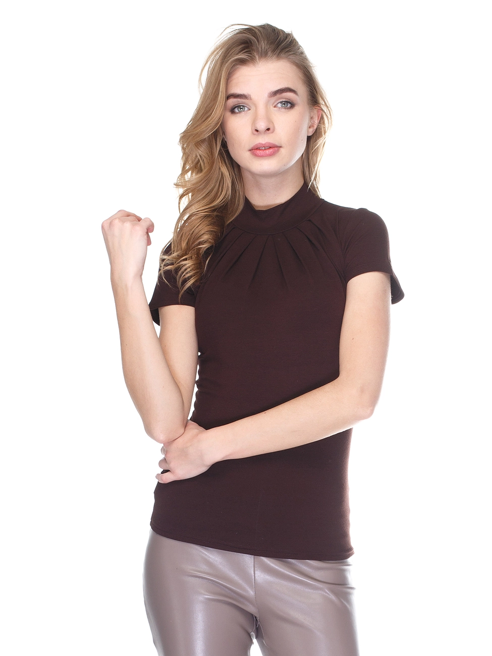 Гольф с короткими рукавами и декоративной сборкой возле горловины.