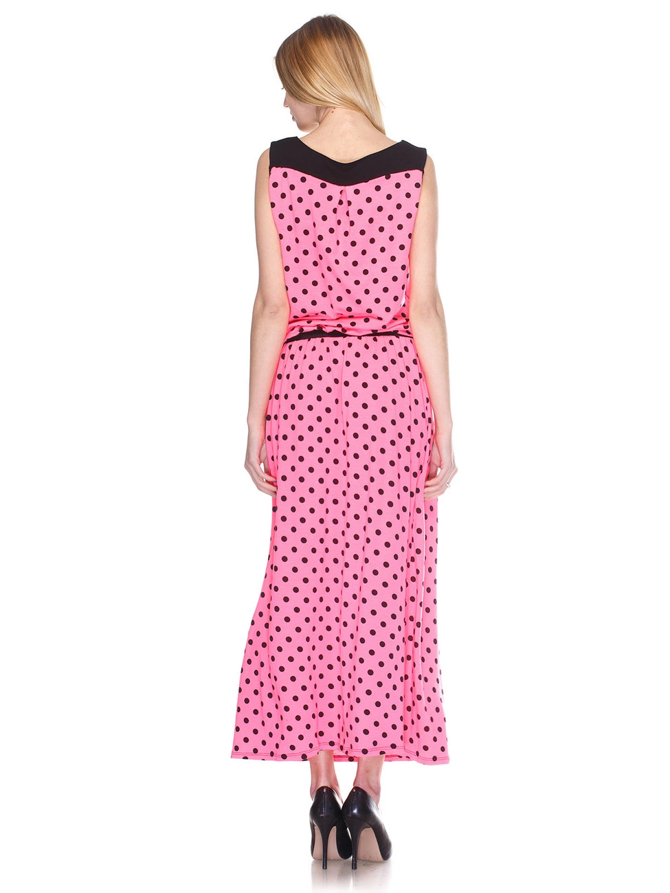 Длинный сарафан свободного кроя, с контрастной широкой резинкой на уровне талии и отделочной горловиной